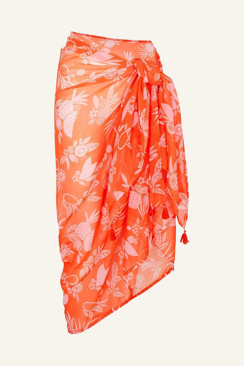 Add a pop of colour and feminine print to boat party attire with this sarong, showcasing our summer-loving fruity floral print. Crafted in a light and breezy fabric, it ties around the waist for a flowy and gauzy finish. <