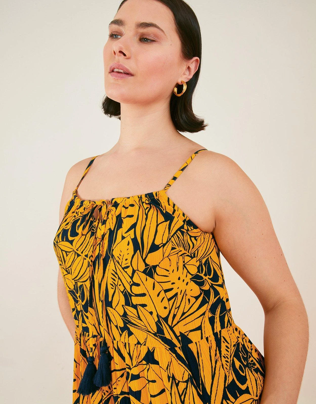Something simple to slip on over your swimwear for quick trips to the beach bar, this mini dress is designed with a vibrant leaf print and tassel tie neckline. It boasts a super relaxed fit to catch the warm breeze, with a mini length skirt so your legs can soak up the rays.