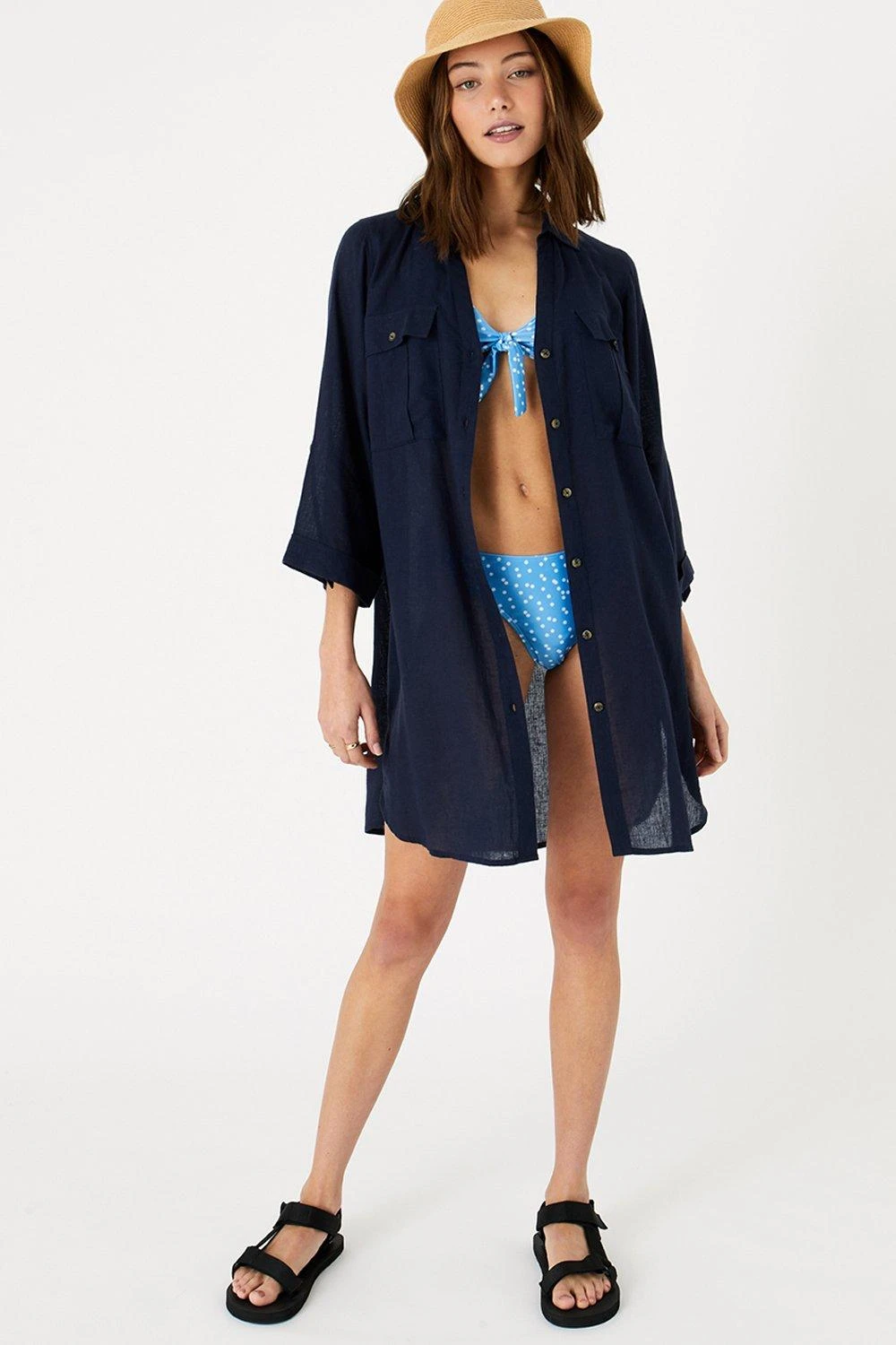 In our daydreams, we see this piece on a sandy beach with a cocktail in hand. The perfect airy piece to throw over your swimsuit, simply style it with sandals and some oversized sunnies. Designed in a light linen-blend.