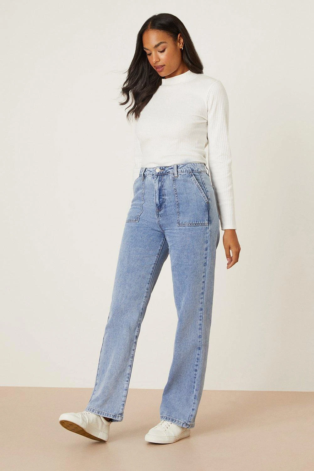 Destination denim. From classic straight leg and your favourite skinny’s and jeggings to retro-inspired wide leg and tapered mom jeans, find your dream fit in our women’s jeans collection. Whether you want to make a statement or looking to update your essentials, our edit of women’s jeans has you covered for every mood and moment.Style: Cargo Detail Straight Leg JeanLength: Approx. 76cmFit: StraightIdeal for: DaywearDesign: Cargo