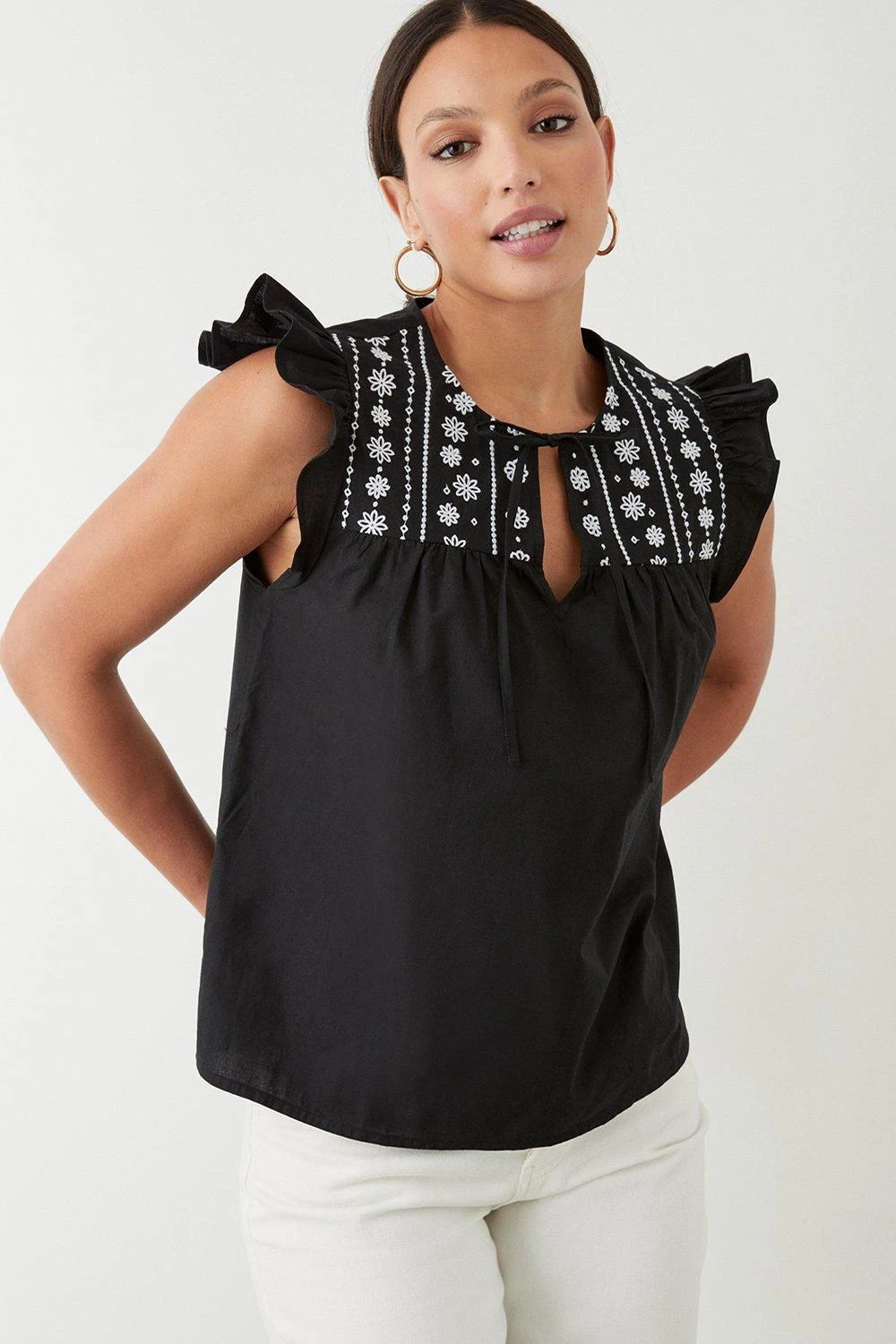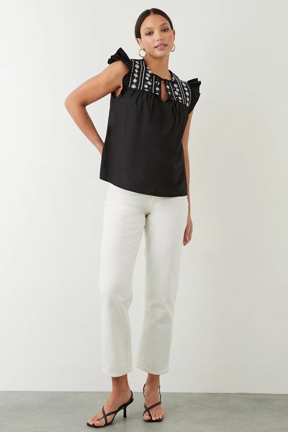 Cami or blouse? Shirt or bodysuit? Whatever you’re after, our women’s tops have you covered for every event in the social calendar. From casual fits to elevated styles for special occasions, we make it easy to nail the ‘jeans and a nice top’ look. Think puff sleeves, pretty prints, wrap silhouettes and so much more.Style: Cream Embroidered Poplin Shell Blouse Length: Approx. 64cm Fit: Relaxed Ideal for: DaywearDesign: Embroidered Make-up & Fragrance: Primer (Estée Lauder, Futurist Aqua Brilliance Watery Glow Primer), Foundation (Estée Lauder, Futurist Hydra Rescue Moisturizing Foundation SPF45), Bronzer (Benefit Hoola Matte Powder Bronzer), Mascara (Benefit, They’Re Real Lengthening Mascara Jet Black 8.5g), Setting Spray (Urban Decay, All Nighter Setting Spray 118ml), Fragrance (Jimmy Choo Eau De Parfum Signature).
