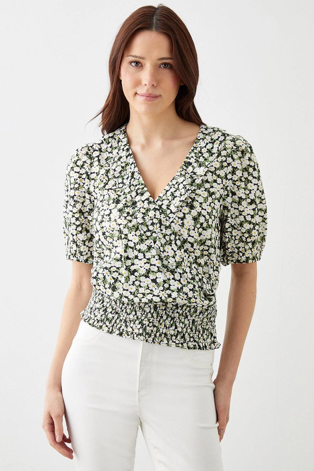 Cami or blouse? Shirt or bodysuit? Whatever you’re after, our women’s tops have you covered for every event in the social calendar. From casual fits to elevated styles for special occasions, we make it easy to nail the ‘jeans and a nice top’ look. Think puff sleeves, pretty prints, wrap silhouettes and so much more. Style: Ditsy Wrap Ruffle Neck Shirred Hem Blouse. Ideal for: Daywear. Design: Shirred. Model wears size UK 10 and is 5′ 9″ tall. Make-up & Fragrance: Primer (Estée Lauder, The Mattifier Shine Control Perfecting Primer + Finisher), Foundation (Lancôme, Teint Miracle Luminous Satin Foundation), Mascara (Estée Lauder, Double Wear Zero-Smudge Lengthening Mascara), Blusher (Benefit, Wanderful World Blushes Starlaa Rosy Bronze Powder Blusher), Setting Spray (Benefit, Porefessional Super Setter Setting Spray Mini 30ml), Fragrance (Elie Saab, Elixir).