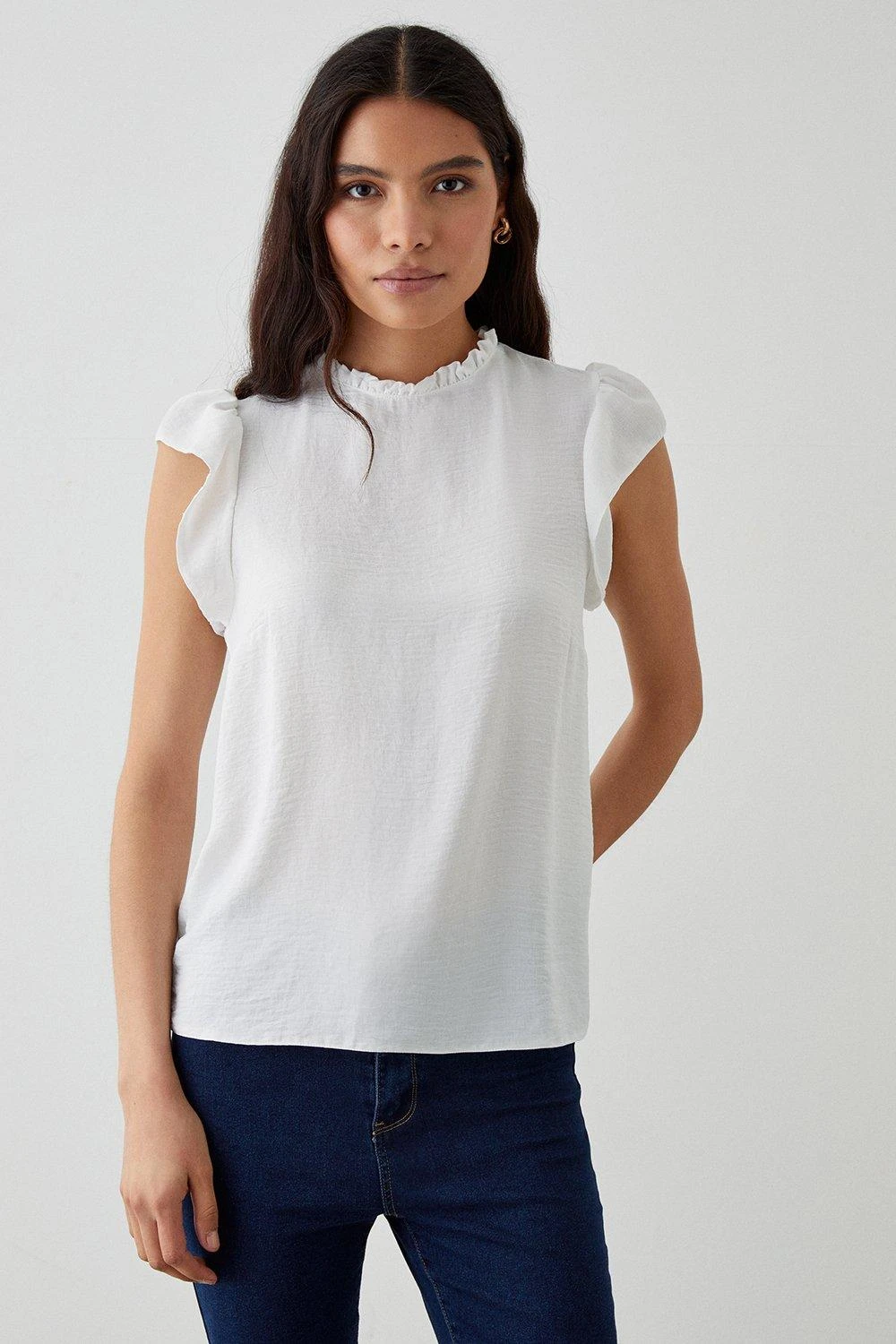 Cami or blouse? Shirt or bodysuit? Whatever you’re after, our women’s tops have you covered for every event in the social calendar. From casual fits to elevated styles for special occasions, we make it easy to nail the ‘jeans and a nice top’ look. Think puff sleeves, pretty prints, wrap silhouettes and so much more. Style: Ivory Frill Neck Shell Blouse. Ideal for: Daywear. Fit: Relaxed. Design: Frill. Made in the UK. Model wears size UK 10 and is 5′ 9″ tall. Make-up & Fragrance: Primer (Yves Saint Laurent, Touche Eclat Blur Primer 30ml), Foundation (Estée Lauder, Double Wear Stay in Place Foundation SPF10), Bronzer (Benefit, Hoola Matte Powder Bronzer), Blusher (Benefit, Wanderful World Blushes Starlaa Rosy Bronze Powder Blusher), Setting Spray (Urban Decay, All Nighter Setting Spray 118ml), Fragrance (Ghost The Fragrance Eau De Toilette).