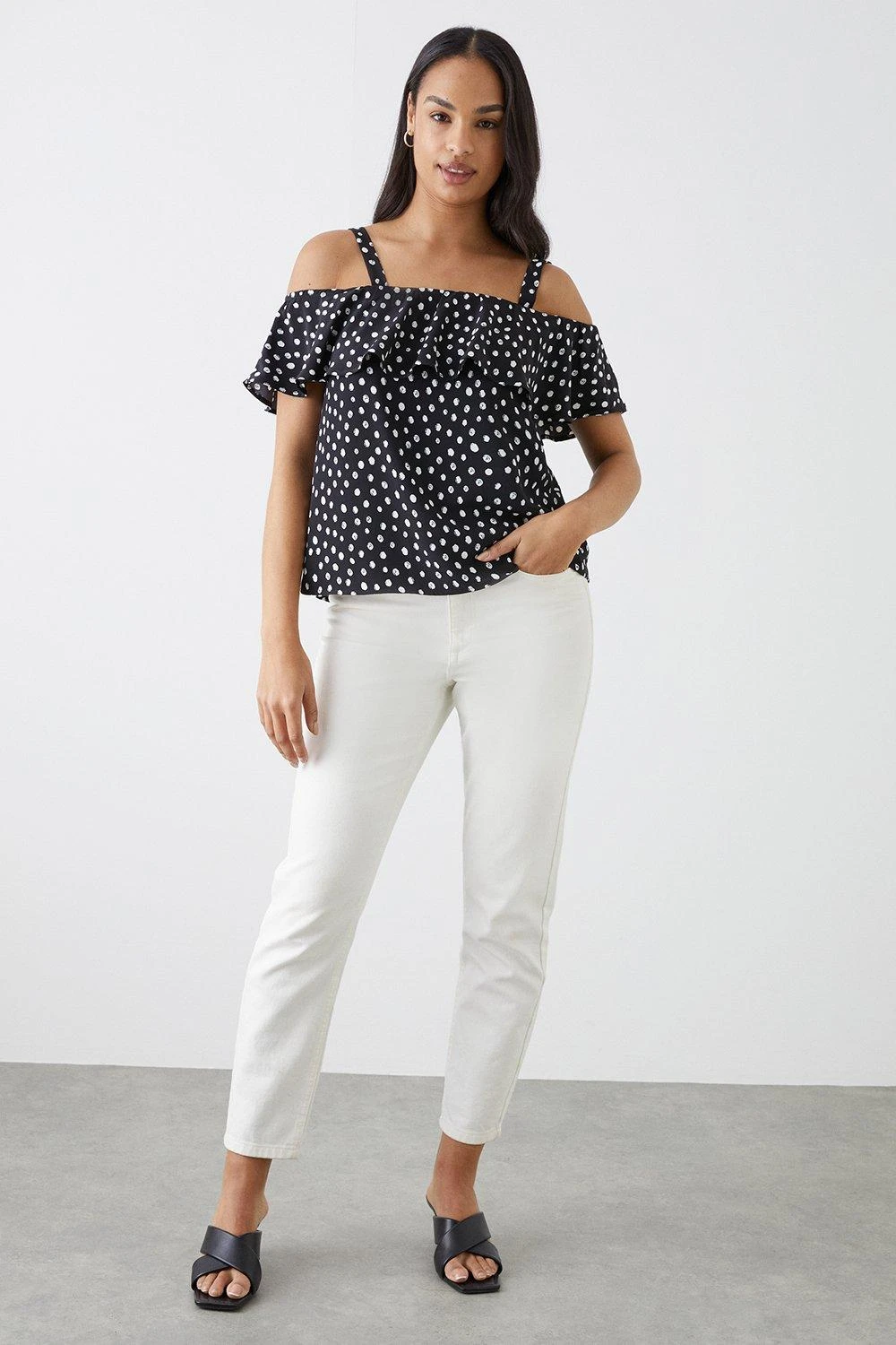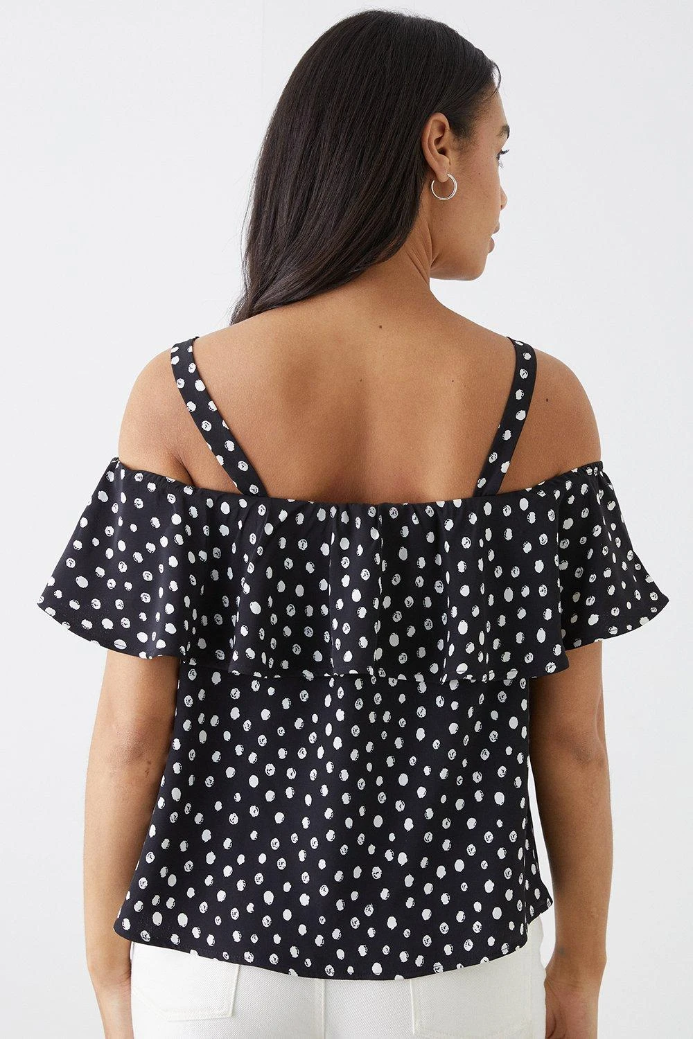 Be the first to review “Dorothy Perkins Mono Spot Frill Neck Bardot Top” Cancel reply