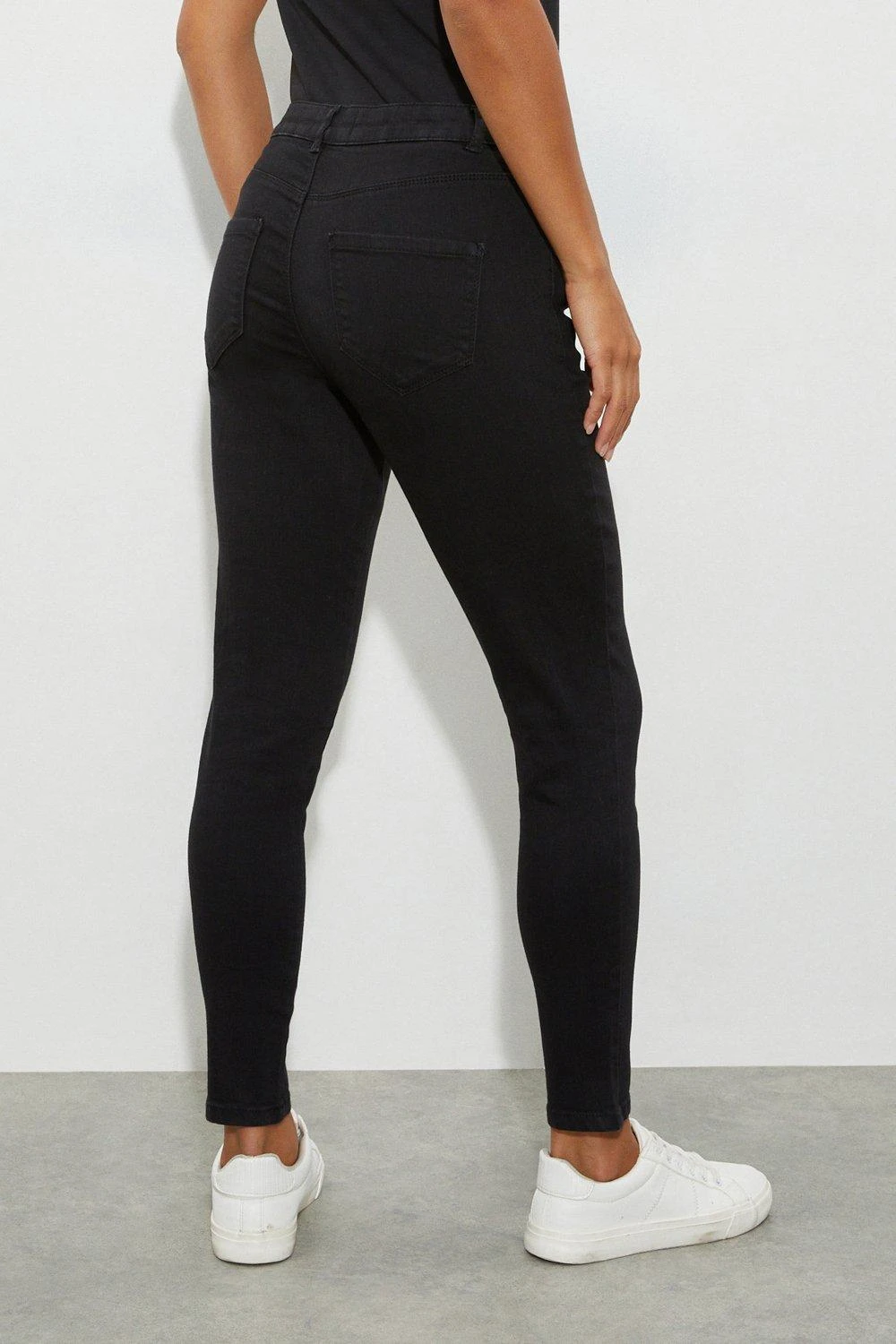 Destination denim. From classic straight leg and your favourite skinny’s and jeggings to retro-inspired wide leg and tapered mom jeans, find your dream fit in our women’s jeans collection. Whether you want to make a statement or looking to update your essentials, our edit of women’s jeans has you covered for every mood and moment.Style: Petite Black Skinny Ellis JeanLength: Approx. 68cm – Inside LegFit: SkinnyIdeal for: CasualDesign: Back Pockets