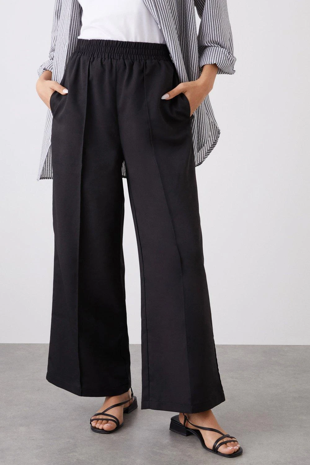 Wide leg or tapered? Tailored or loungewear? Discover our collection of women’s trousers and find the perfect fit for you. With everything from cargo, cropped, flared and cuffed, we’ve got trousers to suit every style. Whether you’re going for brunch or heading out to drinks, we’ll help you create a look you love. Style: Petite Elasticated Waist Wide Leg Trousers. Ideal for: Daywear. Fit: Wide Leg. Make-up & Fragrance: Primer (Yves Saint Laurent, Touche Eclat Blur Primer 30ml), Foundation (Estée Lauder, Double Wear Stay in Place Foundation SPF10), Bronzer (Benefit, Hoola Matte Powder Bronzer), Blusher (Benefit, Wanderful World Blushes Starlaa Rosy Bronze Powder Blusher), Setting Spray (Urban Decay, All Nighter Setting Spray 118ml), Fragrance (Ghost The Fragrance Eau De Toilette).