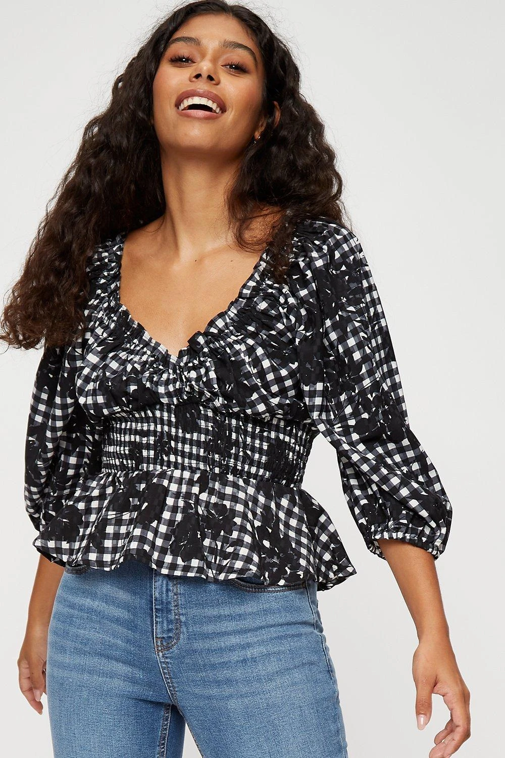 Dorothy Perkins Petite Shirred Hem Wrap Over Angel Sleeve Top