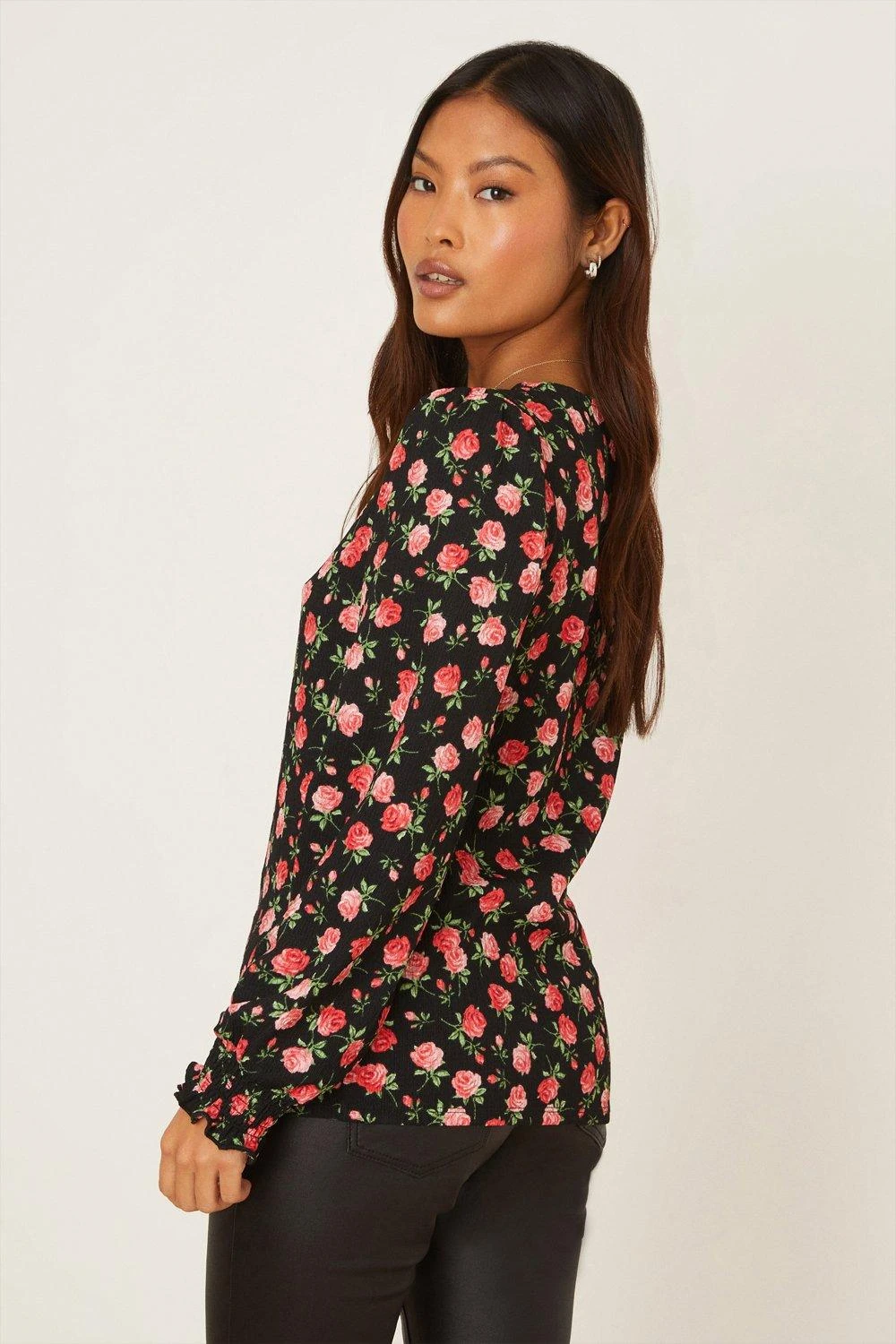 Cami or blouse? Shirt or bodysuit? Whatever you’re after, our women’s tops have you covered for every event in the social calendar. From casual fits to elevated styles for special occasions, we make it easy to nail the �jeans and a nice top’ look. Think puff sleeves, pretty prints, wrap silhouettes and so much more. Style: Petite Rose Shirred Cuff Long Sleeve TopLength: Approx. 59cmFit: RegularIdeal for: DaywearDesign: Printed