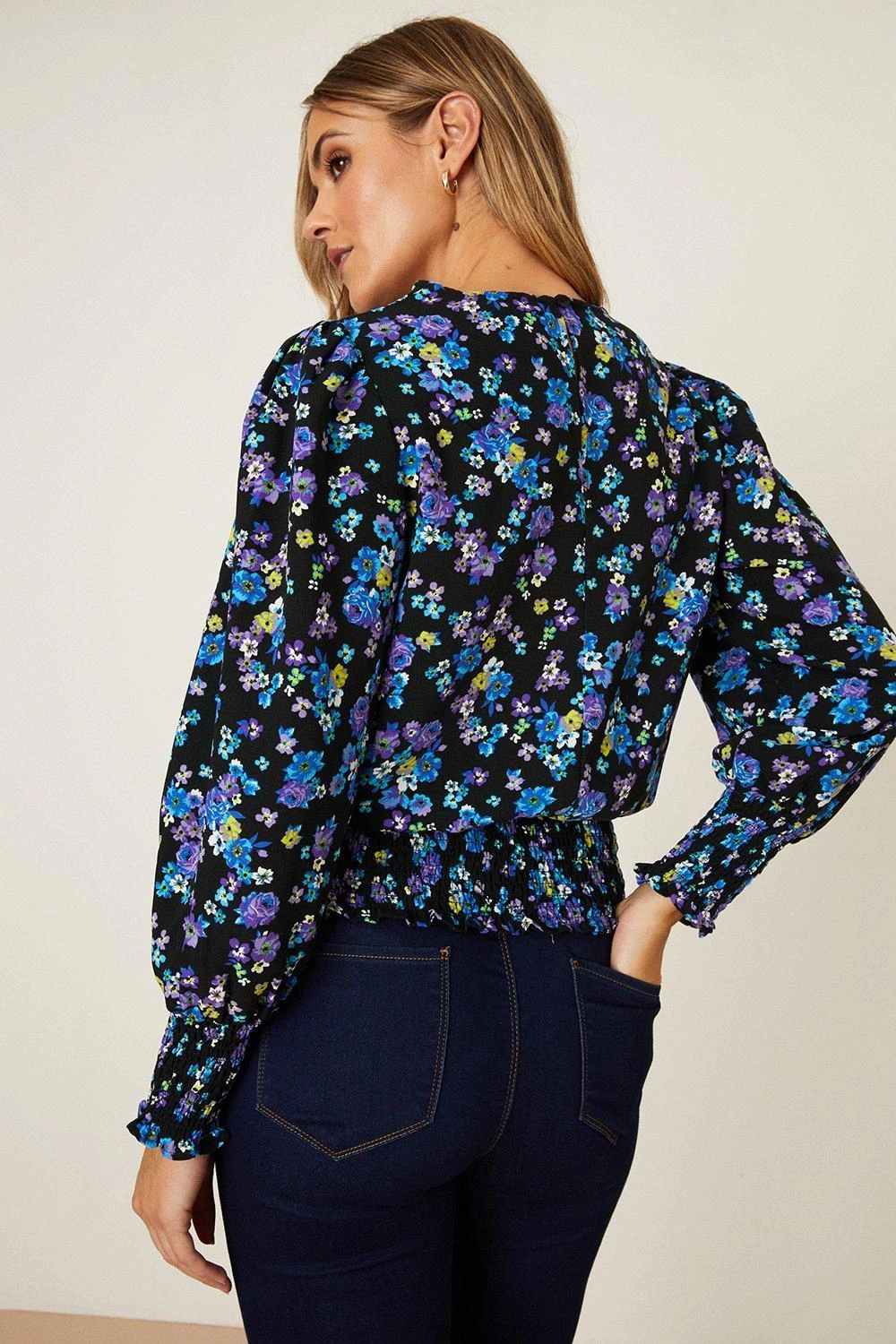 Dorothy Perkins Petite Mono Ditsy Shirred Cuff Long Sleeve Top