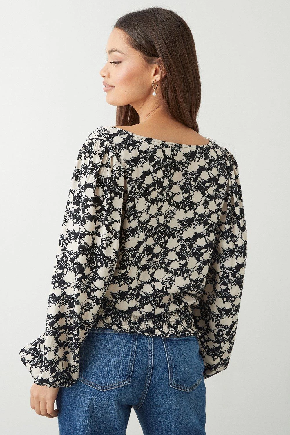 Dorothy Perkins Petite Mono Ditsy Shirred Cuff Long Sleeve Top