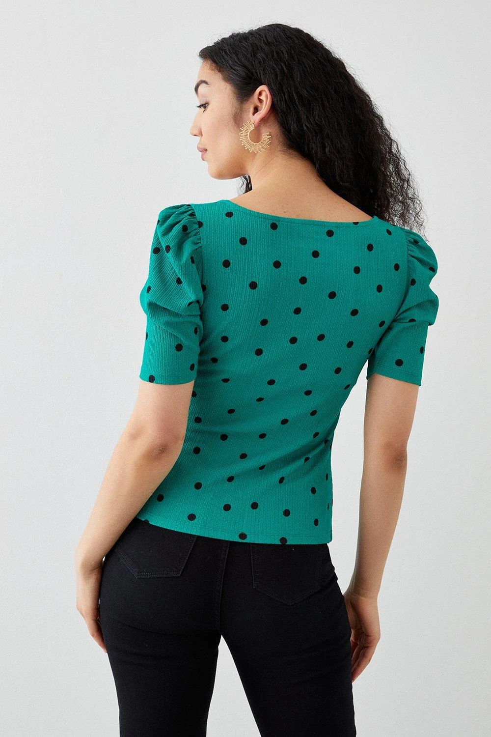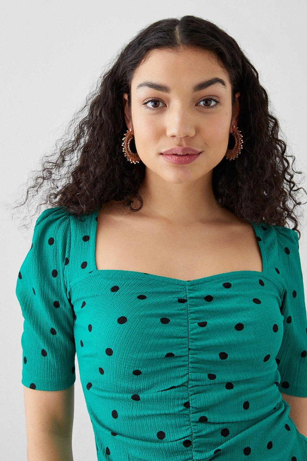 Cami or blouse? Shirt or bodysuit? Whatever you’re after, our women’s tops have you covered for every event in the social calendar. From casual fits to elevated styles for special occasions, we make it easy to nail the ‘jeans and a nice top’ look. Think puff sleeves, pretty prints, wrap silhouettes and so much more. Style: Petite Sweetheart Ruched Body Short Sleeve Top. Ideal for: Daywear. Design: Ruched. Model wears size UK 10 and is 5′ 3″ tall. Make-up & Fragrance: Primer (Estée Lauder, Futurist Aqua Brilliance Watery Glow Primer), Foundation (Estée Lauder, Futurist Hydra Rescue Moisturizing Foundation SPF45), Bronzer (Benefit Hoola Matte Powder Bronzer), Mascara (Benefit, They’Re Real Lengthening Mascara Jet Black 8.5g), Setting Spray (Urban Decay, All Nighter Setting Spray 118ml), Fragrance (Jimmy Choo Eau De Parfum Signature).