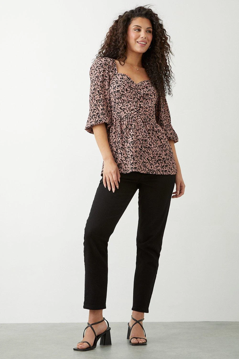 Dorothy Perkins Petite Sweetheart Ruched Body Short Sleeve Top