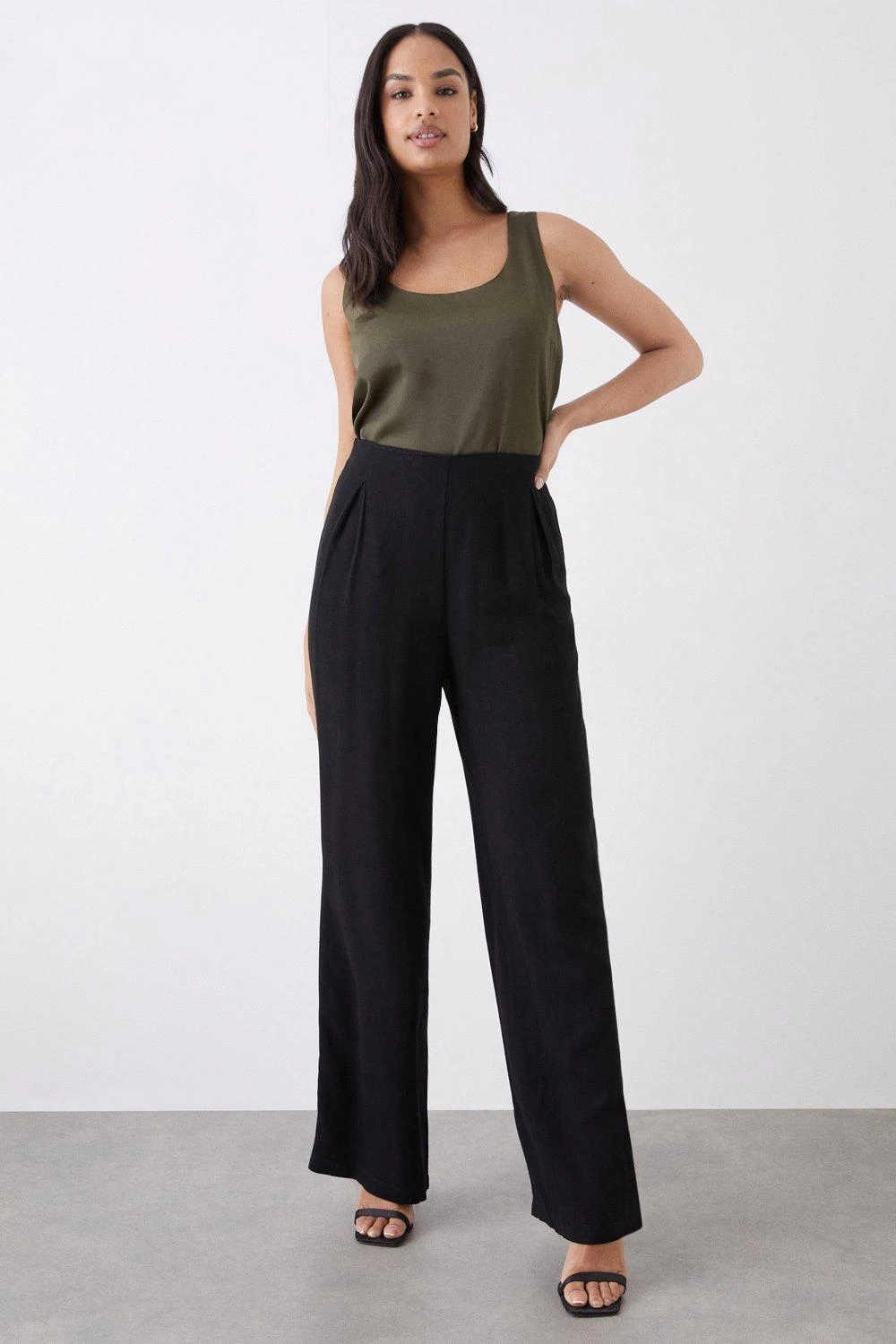 Wide leg or tapered? Tailored or loungewear? Discover our collection of women’s trousers and find the perfect fit for you. With everything from cargo, cropped, flared and cuffed, we’ve got trousers to suit every style. Whether you’re going for brunch or heading out to drinks, we’ll help you create a look you love. Style: Pull On Linen Look Wide Leg Trousers. Ideal for: Casual. Fit: Wide Leg. Model wears size UK 10 and is 5′ 9″ tall. Make-up & Fragrance: Primer (Estée Lauder, Futurist Aqua Brilliance Watery Glow Primer), Foundation (Estée Lauder, Futurist Hydra Rescue Moisturizing Foundation SPF45), Bronzer (Benefit Hoola Matte Powder Bronzer), Mascara (Benefit, They’Re Real Lengthening Mascara Jet Black 8.5g), Setting Spray (Urban Decay, All Nighter Setting Spray 118ml), Fragrance (Jimmy Choo Eau De Parfum Signature).