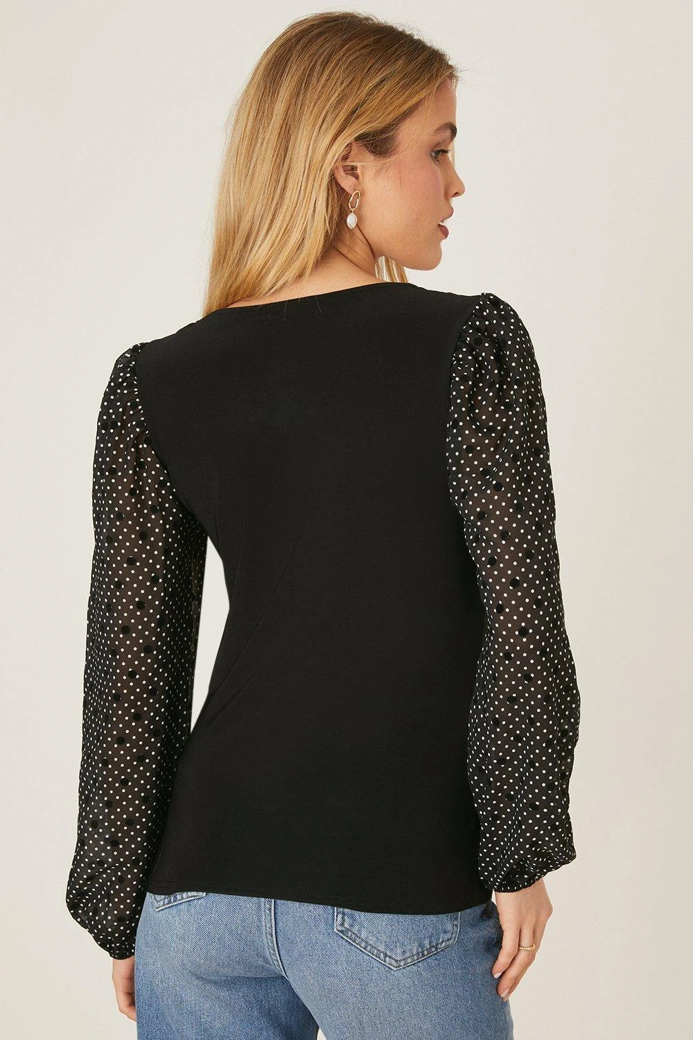 Be the first to review “Dorothy Perkins Scoop Neck Woven Spot Flock Sleeve Top” Cancel reply