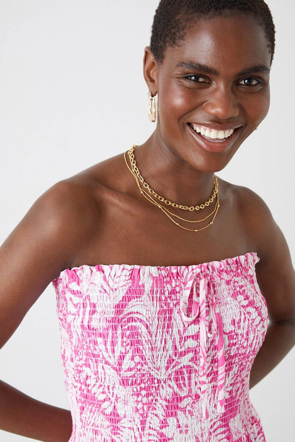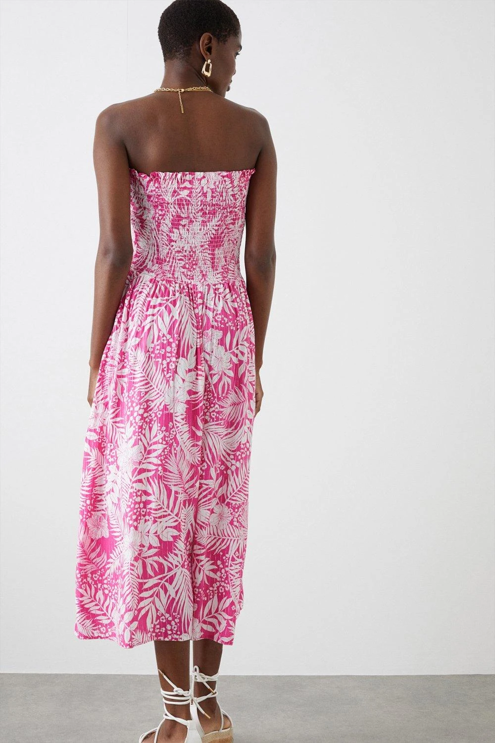 To the beach. When it comes to summer-ready styles, our collection of women’s beachwear is full of mood-boosting colours, fun prints and flattering silhouettes that’ll have you ready to hit the beach bar in no time. Think dresses, skirts and cover-ups; holiday packing just got that bit easier. Style: Shirred Bandeau Midi Dress. Ideal for: Beachwear. Design: Shirred. Model wears size UK 10 and is 5′ 9″ tall. Make-up & Fragrance: Primer (Estée Lauder, Futurist Aqua Brilliance Watery Glow Primer), Foundation (Estée Lauder, Futurist Hydra Rescue Moisturizing Foundation SPF45), Bronzer (Benefit Hoola Matte Powder Bronzer), Mascara (Benefit, They’Re Real Lengthening Mascara Jet Black 8.5g), Setting Spray (Urban Decay, All Nighter Setting Spray 118ml), Fragrance (Jimmy Choo Eau De Parfum Signature).