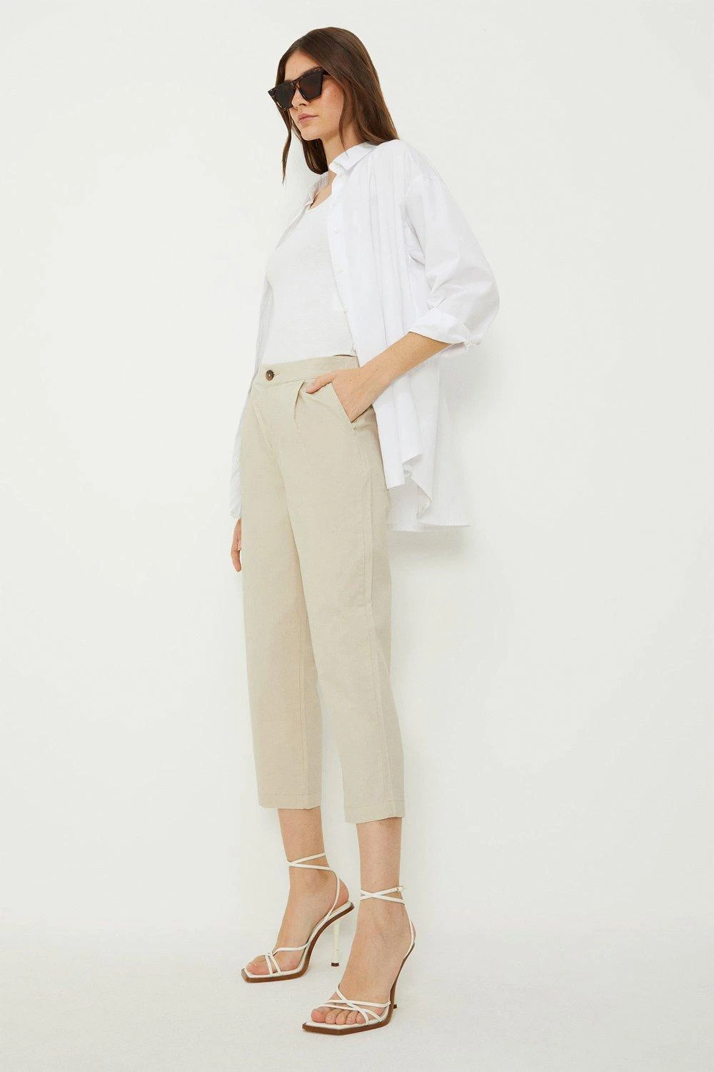 Stone Poplin Crop Trousers