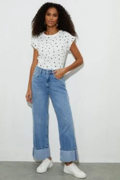 Dorothy Perkins Petite Mono Ditsy Shirred Cuff Long Sleeve Top