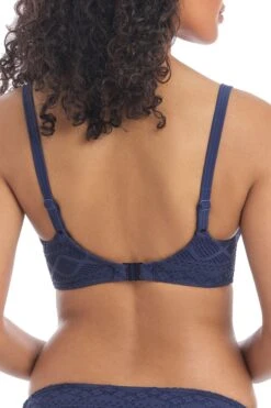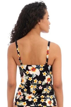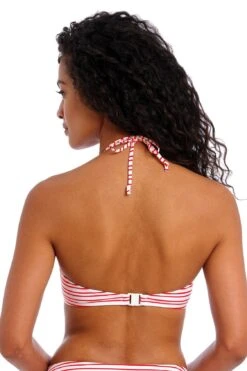 A striking hand painted stripe design in peachy, purple and pink tones. The Plunge Bikini top has a low neckline and under-wired lined cups for shape and support with fixed fully adjustable shoulder straps.